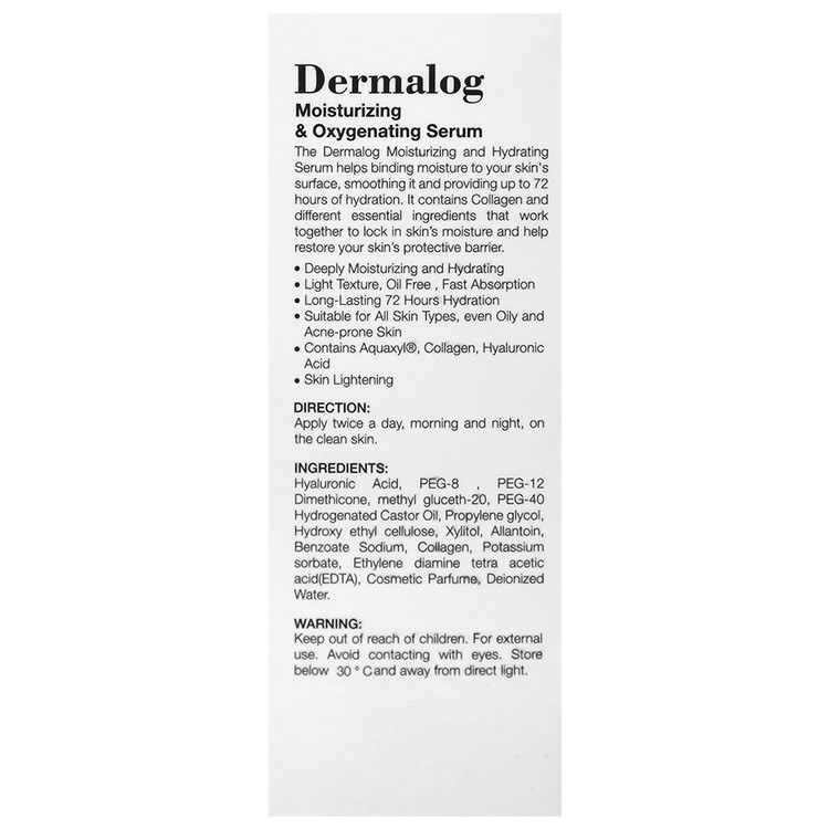 سرم مرطوب کننده و آبرسان درمالوگ ضمن آبرسانی عمیق، پوستی صاف به ارمغان آورده که تا 72 ساعت آن را مرطوب نگه می دارد. همچنین این سرم دارای کلاژن و مواد موثره مختلفی است که در همراهی با هم رطوبت پوست را محبوس و از آن در برابر آسیب های محیطی محافظت می کند.